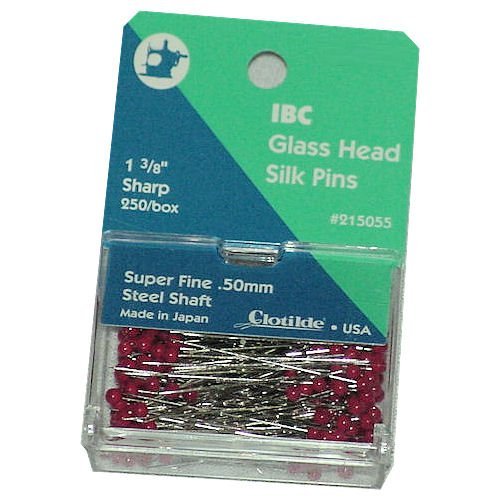 IBC glass head silk pins 1 3-8 inch super fine 0.5mm shaft with red head - 250/box