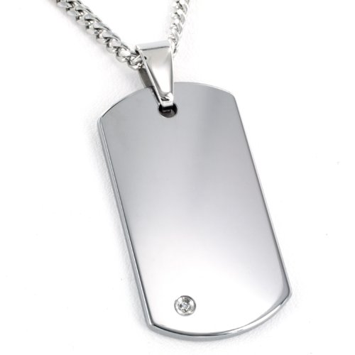 West Coast Jewelry | Crucible Tungsten Carbide Diamond Dog Tag Pendant Curb Chain Necklace - 24"