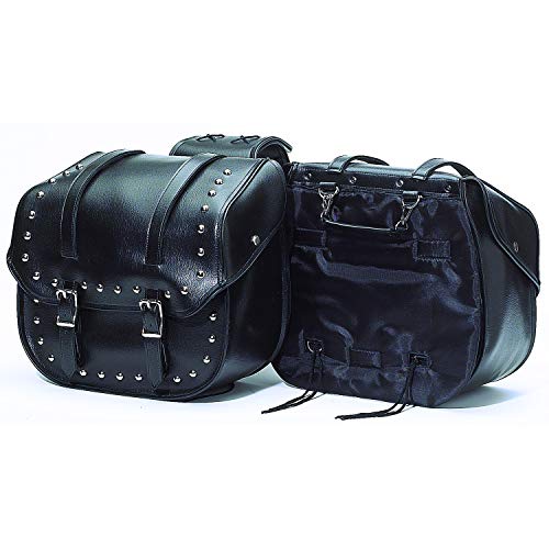 Diamond Plate 2 Piece Motorcycle Saddlebag Set, Heavy Duty Waterproof PVC with Studs, Keep Your Belongings Safe and Dry with Style, Black