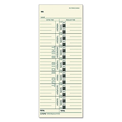 TOPS Time Cards, Weekly, 1-Sided, Replaces M-33, 10-800292, 3-1/2" x 9", Manila, Green Print, 100-Count (12593)