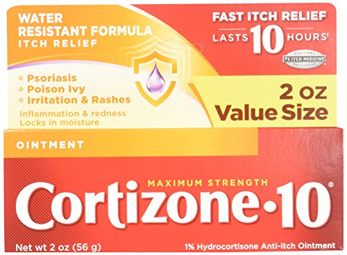Cortizone 10 Maximum Strength Ointment, 2 Ounce, Anti-Itch Ointment for Poison Ivy, Suman or Oak, Bug Bites, Eczema, Psoriasis, or Contact Dermatitis, Helps Bring Fast Relief to Itching Skin