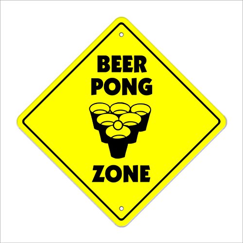 Beer Pong-m Crossing Sign Zone Xing | Indoor/Outdoor | 12" Tall Plastic Sign table drinking game ping balls gag funny college drink