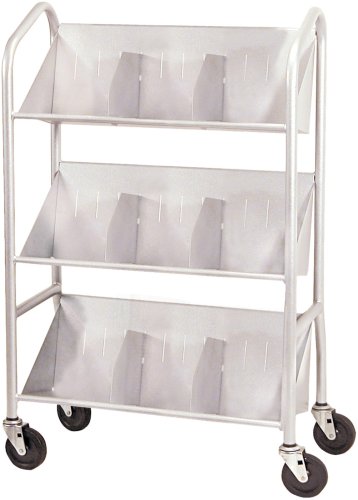 Buddy Products 54143 Sloped-Shelf Book Cart, Three Shelves, 26w x 16d x 41-1/2h, Gray