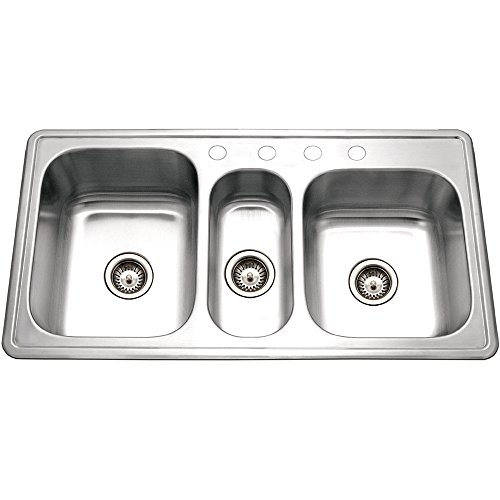 Houzer PGT-4322-1 Premiere Gourmet Series Topmount Stainless Steel 4-Hole Triple Bowl Kitchen Sink