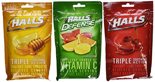 Halls Cough Drops 6 Pack - 2 Cherry, 2 Honey Lemon, 2 Assorted Citrus