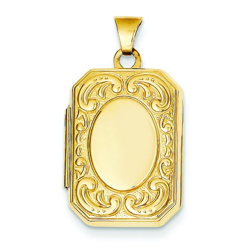 14K Gold Engravable Rectangle Locket Pendant Jewelry