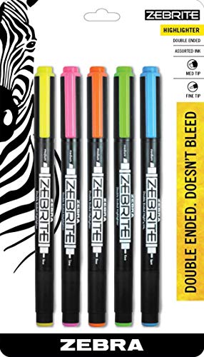 Zebra Zebrite Double-Ended Highlighter, Medium Chisel Point and Fine Point, Assorted Colors, 5-Count
