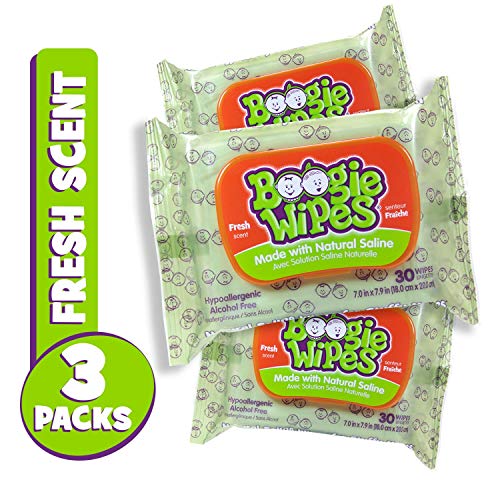 Boogie Wipes Gentle Saline Nose Wipes Original Fresh Scent - Set of 3 (90 Wipes Total)