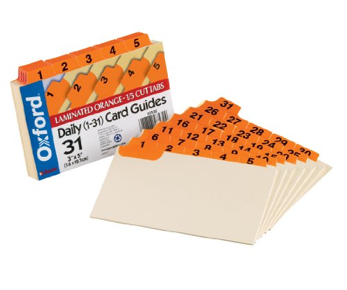 Oxford Index Card Guides with Laminated Tabs, Daily (1-31), 3" x 5" Size, Orange, 31 Guides per Set (3532)