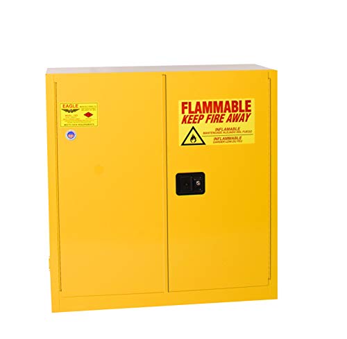 Eagle 1932 Safety Cabinet for Flammable Liquids, 2 Door Manual Close, 30 gallon, 44"Height, 43"Width, 18"Depth, Steel, Yellow