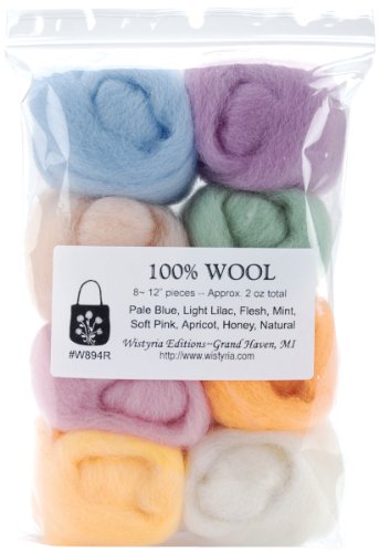 Wistyria Editions 0.25-Ounce Wool Roving, 12-Inch, Soft Pastels, 8-Pack