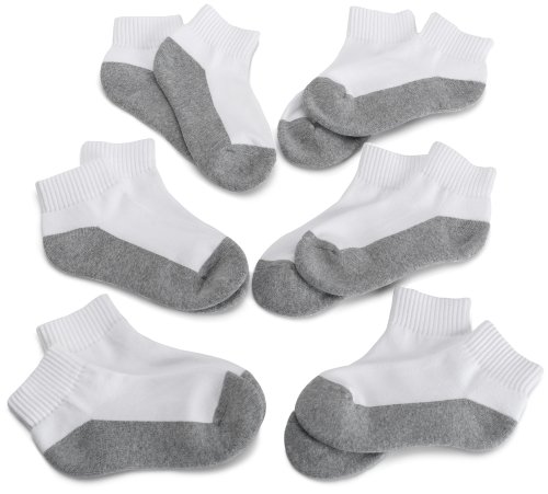 Jefferies Socks Boys' Seamless-Toe Quarter Athletic Socks (Pack of 6), White/Grey, 7-8 1/2(Small)