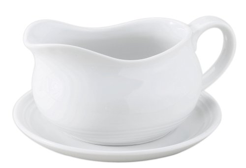 HIC Hotel Gravy Sauce Boat with Saucer Stand, Fine White Porcelain, 24-Ounces