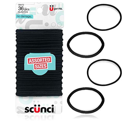 Scunci No Damage Assorted Size 4mm & 2mm Elastics, 36 Count