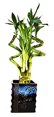 9GreenBox - Lucky Bamboo – Spiral Style with Black and Blue Ceramic Vase