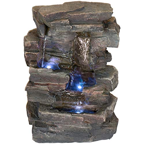 Alpine Corporation 4-Tier Cascading Tabletop Fountain with LED Lights - Indoor/Outdoor Water Fountain Decor - Gray