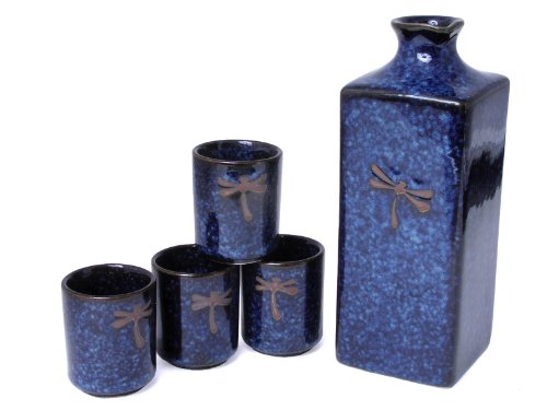 Happy Sales HSSS-DFS08, 5 pc Japanese sake set Blue Dragonfly
