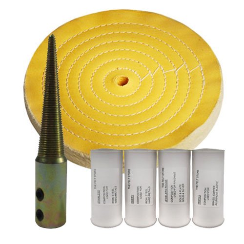 (1) YELLOW 6" COTTON BUFF, (1) BUFFING COMPOUND 4PK, (1) TAPERED SPINDLE KIT