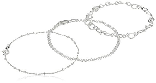 Sterling Silver Set of Three Bismarck, Flat Open-Oval and Thin Twisted Bar Chain Bracelets, 7"