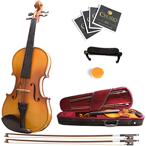 Mendini 4/4 MV400 Ebony Fitted Solid Wood Violin with Hard Case, Shoulder Rest, Bow, Rosin, Extra Bridge and Strings - Full Size