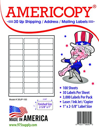 Americopy 3000 Blank Labels Name and Address Label, 2-5/8" x 1