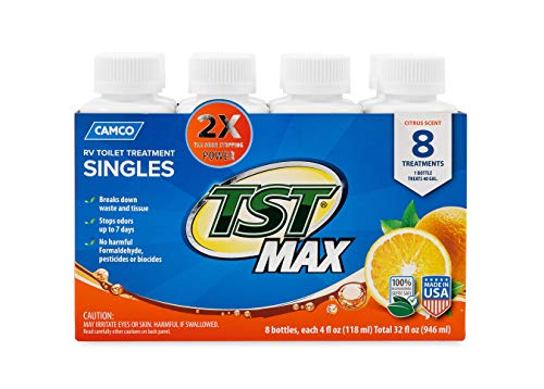 Camco TST Ultra-Concentrate Orange Scent RV Toilet Treatment, Formaldehyde Free, Breaks Down Waste And Tissue, Septic Tank Safe, Treats Up To 8 - 40 Gallon Holding Tanks (8-pack of 4 ounce singles) , TST Orange - 41191