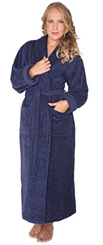 Arus Women's Optimal Style Full Length Thick Shawl Collar Turkish Bathrobe Navy Marine Large