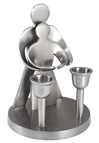 Alef Judaica Pewter 'Our Love' Candle Holder by Giora with Man's arms around a Woman - Comes with Beautiful Blue Velvet Gift Box