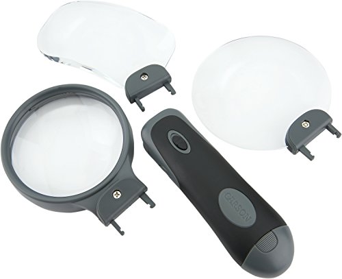 Carson Remov-A-Lens 3-in-1 LED Lighted Hand-Held Magnifier Set with 3 Interchangeable Magnifying Glass Lenses (RL-30)