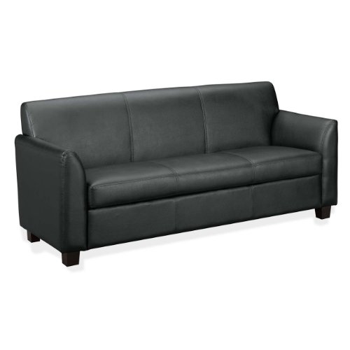 Basyx VL873ST11 73 by 28-3/4 by 32 Tailored Leather Reception 3-Cushion Sofa, Black