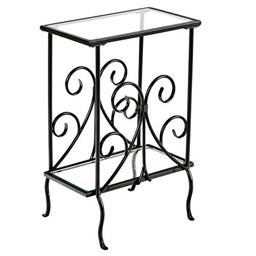 Decorative Metal Magazine Table - Decorative Iron Scrollwork - Glass Top End Table