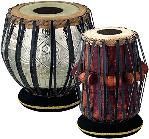 Meinl Percussion Tabla Set with Chrome Plated Copper Bayan and Mahogany Dayan - MADE IN INDIA - Equipped with Goat Skin Heads, Nylon Thongs and Soft Ring Pads (