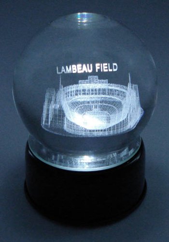 Green Bay Packers New Lambeau Field Stadium Laser Etched Crystal Ball with Musical Light Base