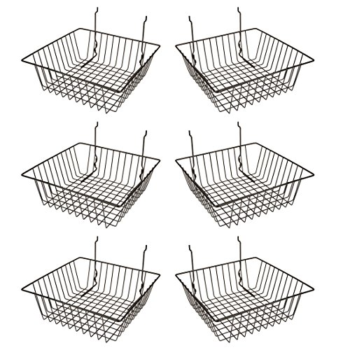 Econoco Multi Fit Black Small Wire Basket for Slatwall, Grid of Pegboard, Commercial All Purpose Basket, (Pack of 6)