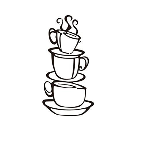 Coffee House Cup Java Silhouette Wall Art Sticker, Metal Black Finish