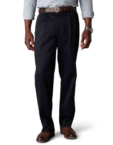 Dockers Men's Classic Fit Signature Khaki Lux Cotton Stretch Pants-Pleated, Navy Discontinued, 42W x 30L