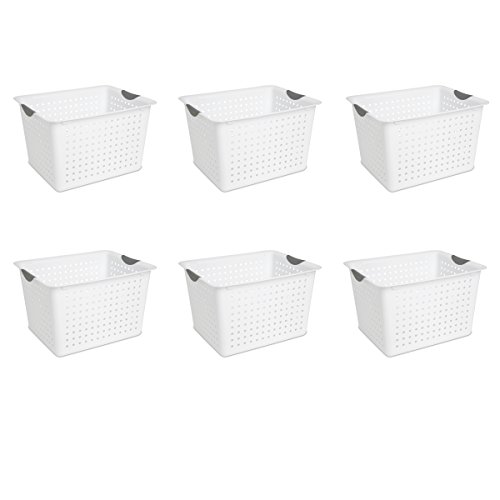 Sterilite 16288006 Deep Ultra Basket, White Basket w/ Titanium Inserts, 6-Pack