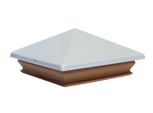 Woodway Pyramid Fence Post Cap 6 x 6 Weather Resistant Metal Cap for Outdoor Use with Solid Cedar Wood Base, White