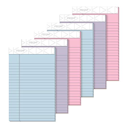 TOPS Prism+ Writing Pads, 5x 8, Perforated, Jr. Legal Ruled, Narrow 1/4 Spacing, Assorted Colors, 2 Each: Pink, Orchid, Blue, 50 Sheets, 6 Pack (63016)
