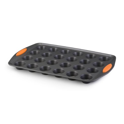 Rachael Ray Yum-o! Nonstick Bakeware 24-Cup Oven Lovin’ Mini Muffin Pan, Gray with Orange Handles