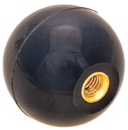 1 7/8 dia., 1/2-13 thds Brass., Black Phenolic Plastic Ball Knob - Inch (1 Each)