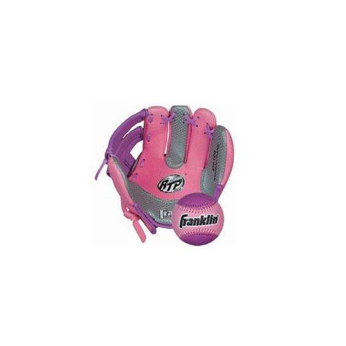 Franklin Girl's Pink & Purple Youth Softball Mitt Glove & Ball Set