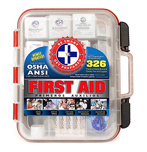 First Aid Kit Hard Red Case 326 Pieces Exceeds OSHA and ANSI Guidelines 100 People - Office, Home, Car, School, Emergency, Survival, Camping, Hunting, and Sports