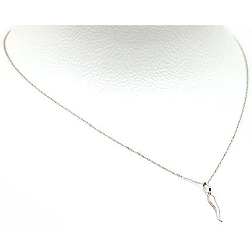 14K White Gold Italian Horn Charm & 18" Chain Jewelry