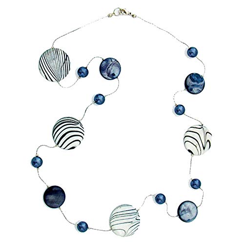 Natural Zebra Shell with Dyed Black and White Cultured Freshwater Pearl Beads Long Necklace, 32 inches