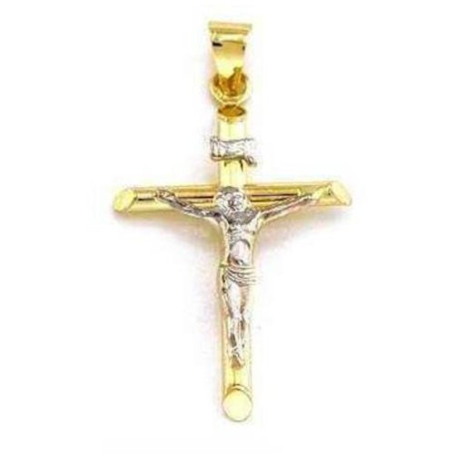 14K Gold Crucifix Charm INRI Jesus Cross Faith Jewelry 26mm