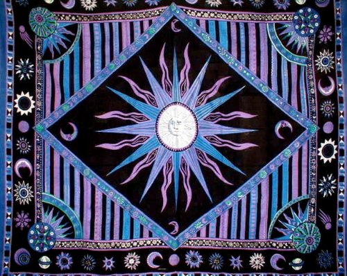 India Arts Celestial Tapestry Cotton Bedspread Full-Queen Purple,106 x 86