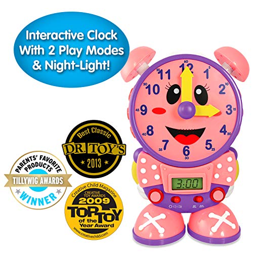 The Learning Journey Telly The Teaching Time Clock Pink - Electronic Analog & Digital Time Telling Aid with Two Quiz Modes & Night Light– Preschool Toys & Gifts for Boys & Girls Ages 3 & Up