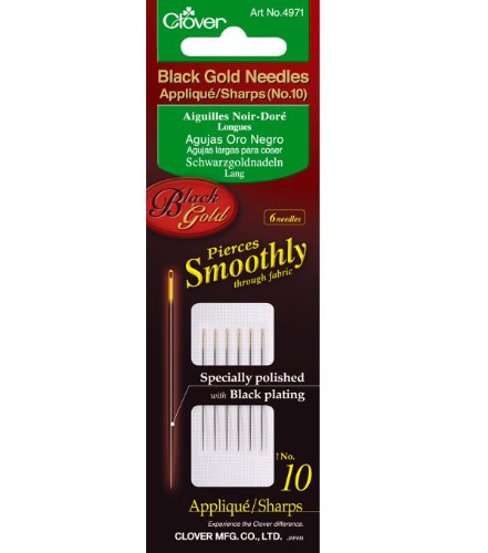 Clover 4971 Clover No.10 Needles Applique/Sharps, Black/Gold
