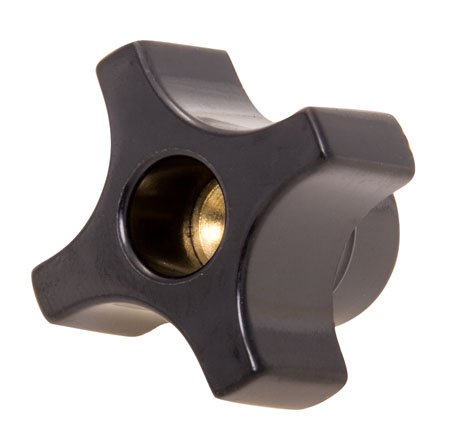 1 3/4 dia., 5/16-24 thds., Four Prong Plastic Knobs w/Black Glossy Phenolic Thru Hole Brass Insert - Inch (1 Each)